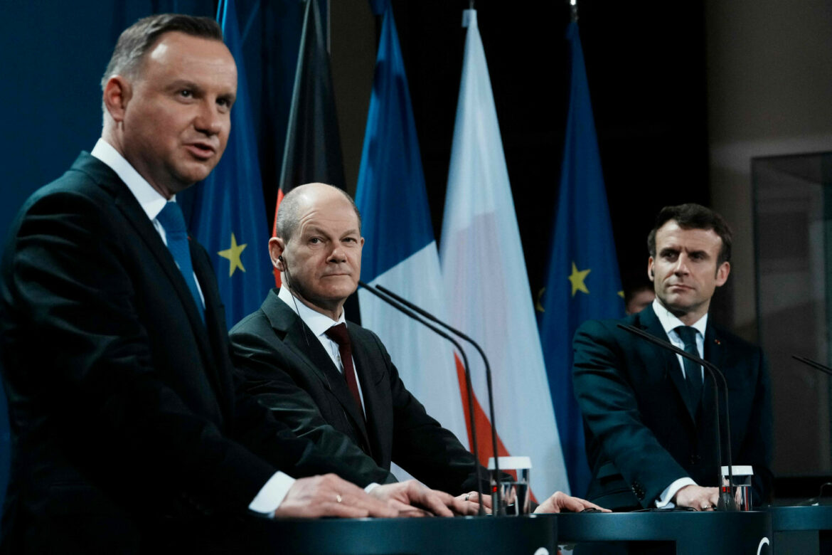 נשיא פולין אנדז'יי דודה הגיש בקשה למציאת פתרון להימנעות ממלחמה בכנס בברלין לקראת הפגישה במתכונת משולש ויימאר בהשתתפות מנהיגי פולין, צרפת וגרמניה. ביום שלישי, 8 בפברואר, נשיא פולין אנדז'יי דודה, נשיא צרפת עמנואל מקרון וקנצלר גרמניה אולף שולץ שוחחו על הביטחון באזור מרכז ומזרח אירופה אל מול האיום של פלישה רוסית לאוקראינה.